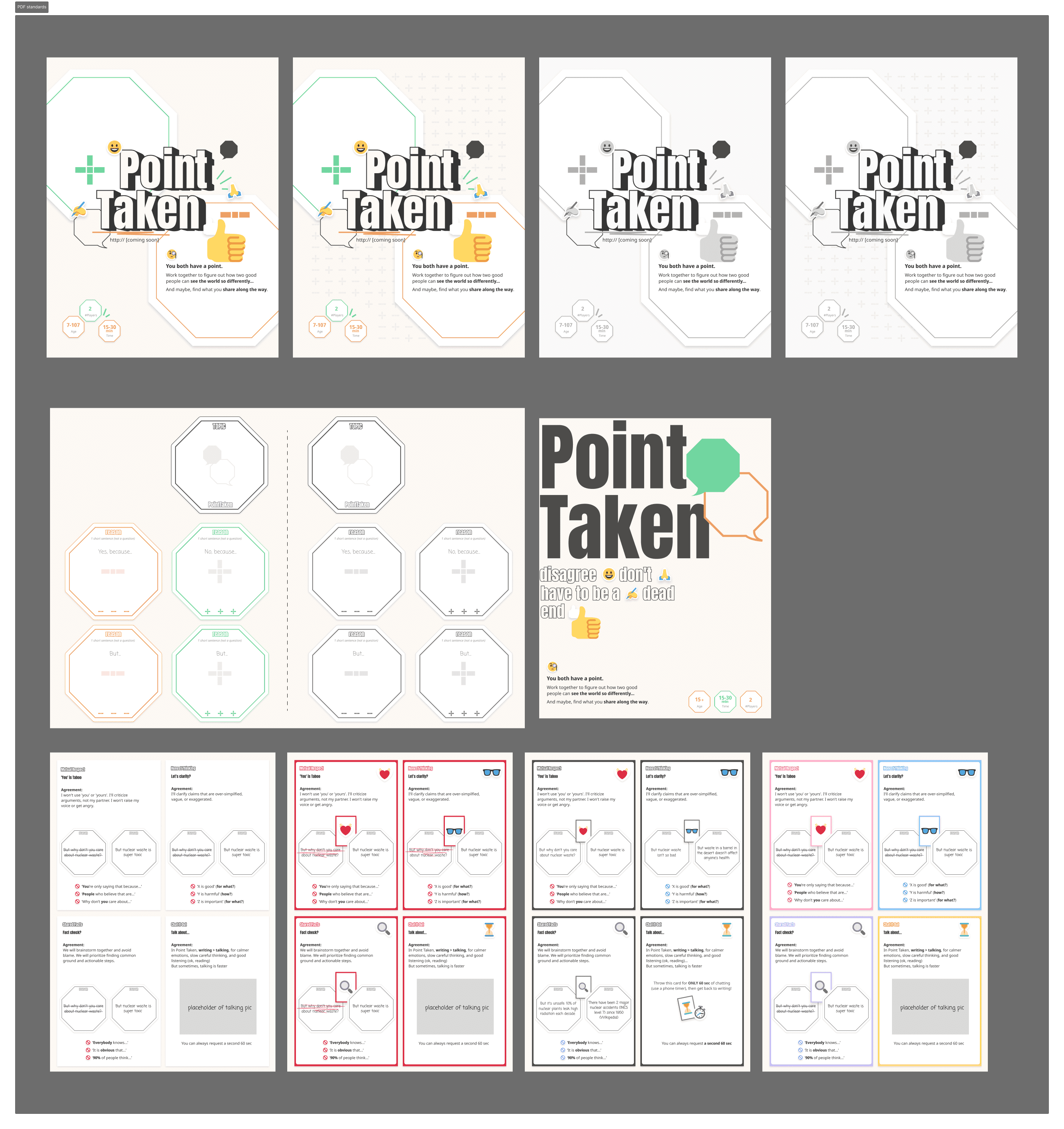 Early names leaned clinical, reflecting the game's research origins. But user testing revealed that players responded to language that felt inviting, not institutional. Point Taken struck the right balance: it nods to argumentation while implying mutual respect. It sounds like something you'd actually say mid-conversation.